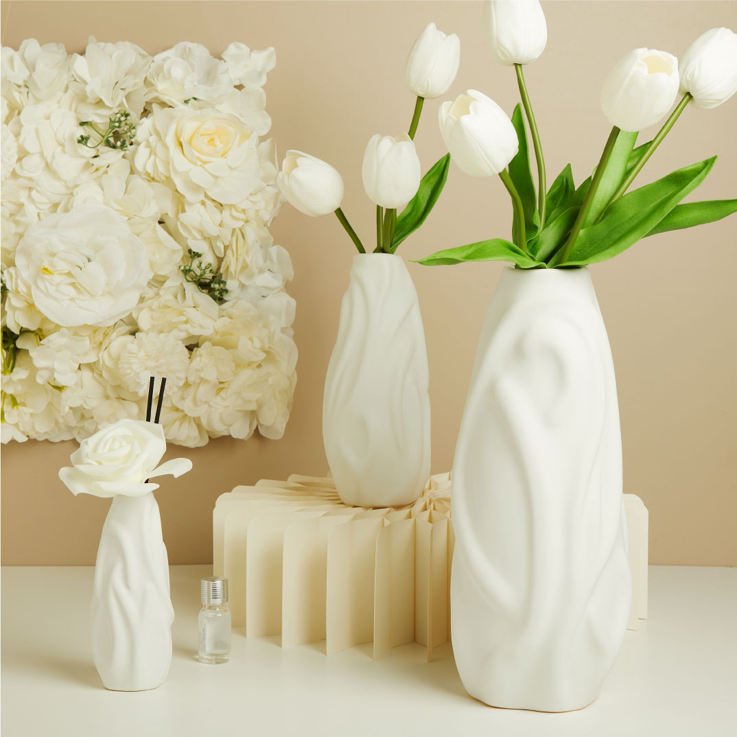 Vaso onde color bianco, misura media con set di fiori tulipani bianchi