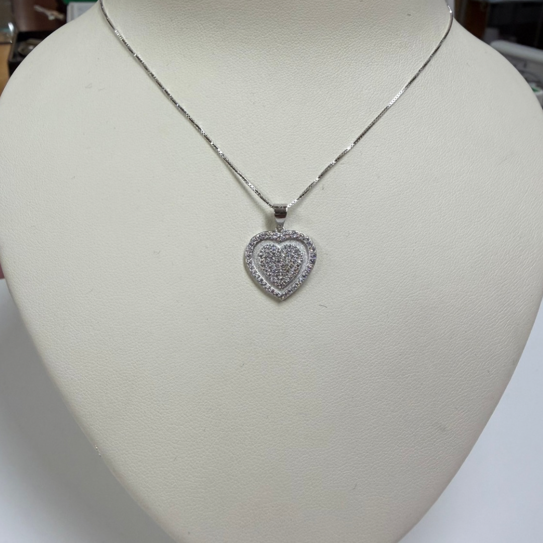 Collana in argento con doppio cuore con zirconi