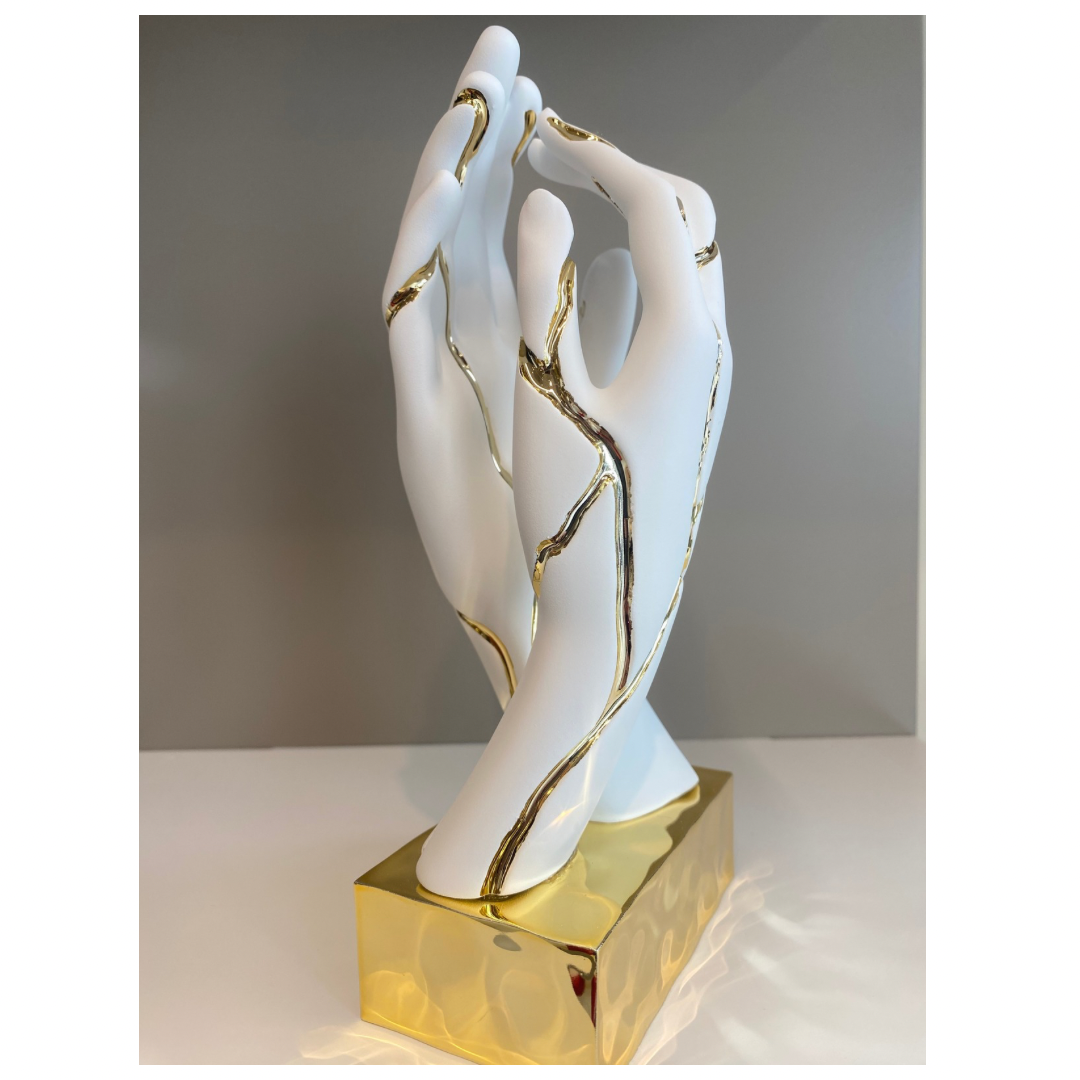 Coppia mani con base dorata e inserti dorati in grès, Made in Italy, h.15cm