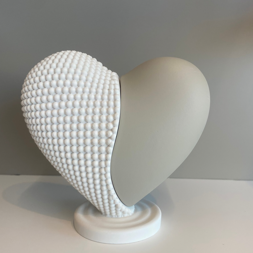Statuina in grès, con metà cuore bianco, Made in Italy, mis 10X11cm
