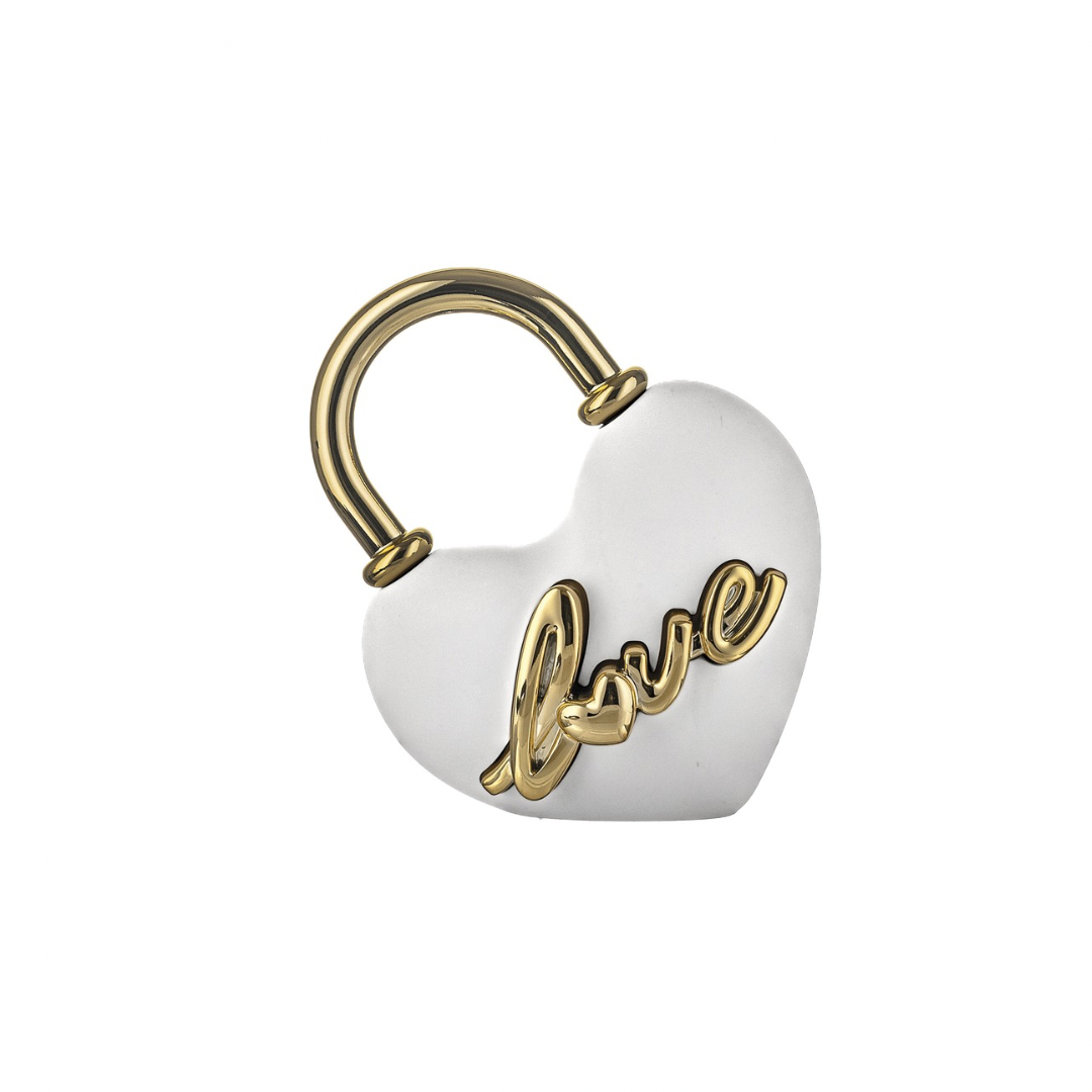 Lucchetto in grès con dettagli color oro.