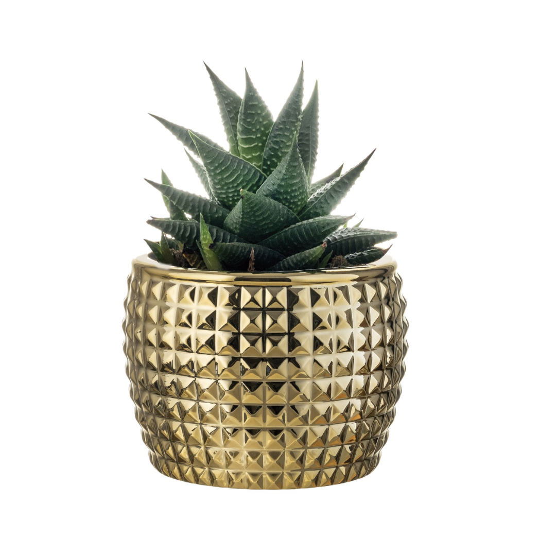 Vasetto dorato, sfaccettato, Made in Italy comprensivo di piantina grassa.