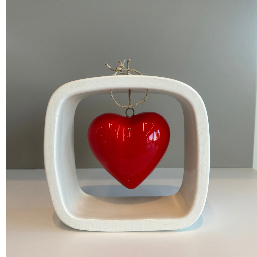 Statuina in ceramica con cuore interno rosso